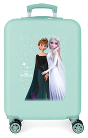 Lleno de estrellas, copos de nieve y una luz especial, te presentamos la colección de maletas y neceser de Frozen Frosted Light en color turquesa. Las hermanas Elsa y Ana, y su bonito caballo en busca de la aurora boreal que ha desaparecido, van a ser tus compañeros ideales, para ayudarte en cualquier viaje que hagas. La maleta infantil, bien equipada con gomas de sujeción y cuatro ruedas, seguro que te ayuda a llevarlo todo bien ordenado y de una manera cómoda, ya que te puedes montar subida en ella mientras te arrastran. Empren