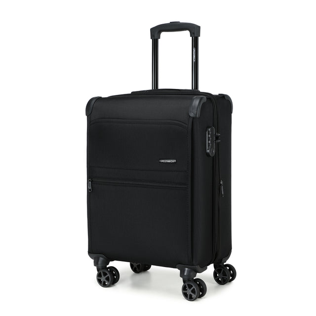 Reisen Sie mit Stil und Komfort mit dem Kabinenkoffer Greenwich PB503 in Schwarz. Dieser für den modernen Reisende entwickelte Koffer verfügt über ein kompaktes und funktionales Design, das den Handgepäckanforderungen der meisten Fluggesellschaften entspricht.