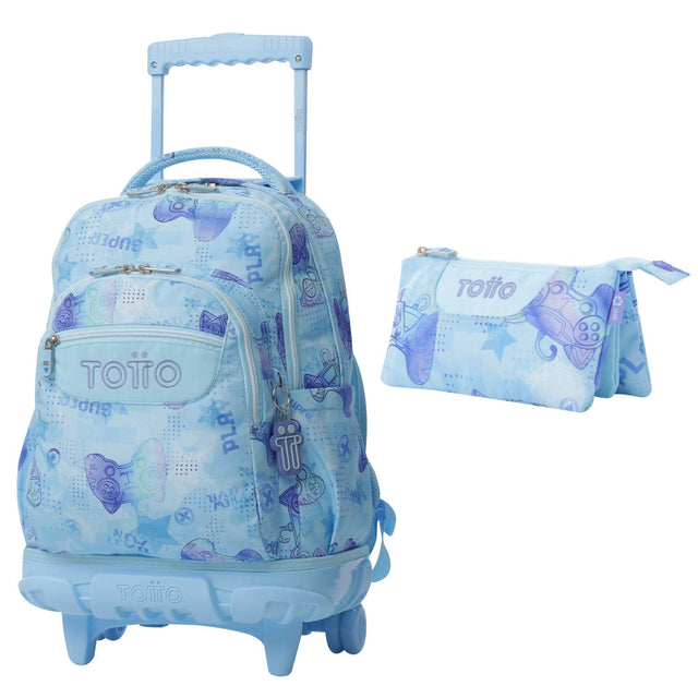 TOTTO School backpack with lines wheels + booth case - 1fy polar