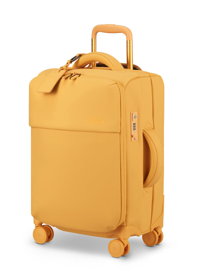 ¡La maleta de cabina definitiva! Ligera, funcional y con un aspecto inigualable, esta maleta blanda te acompañará en todas tus aventuras. Diseñada para viajar con la máxima comodidad: asas acolchadas, múltiples bolsillos, ruedas silenciosas y cerradura TSA integrada, te permitirá viajar con tranquilidad. Su tejido efecto goma mate y su aspecto monocromático, junto con los detalles de diseño metalizados, le confieren un aspecto único e incomparable. El tejido resistente al agua combinado con cremalleras revestidas mantienen tus pertenencias a salvo de las inclemencias del tiempo.