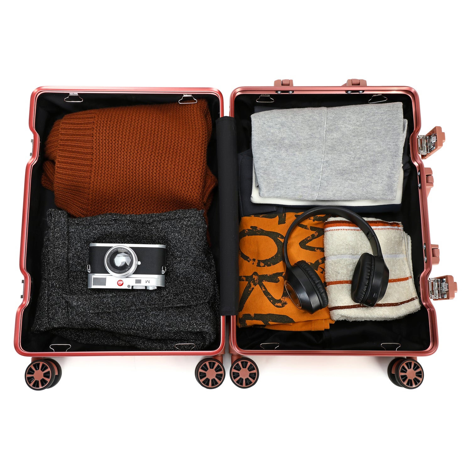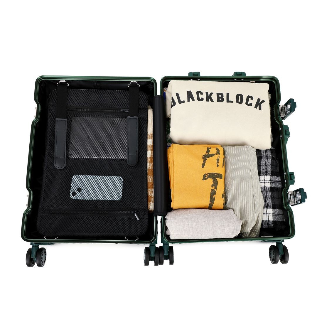 Deze koffer zal je verrassen met je stijl en comfort. De buitenkant van het robuust aluminium en de versterkte hoeken zullen uw bezittingen beschermen tegen elke impact. Bovendien heeft het twee combinatievergrendeling TSA Hiermee kunt u reizen met de grootste beveiliging. De verfijnde kwaliteit wordt gecombineerd om superieure kwaliteit te bieden. Om het met het grootste comfort aan te kunnen, biedt het dubbele wielen en dubbele buisschieter.