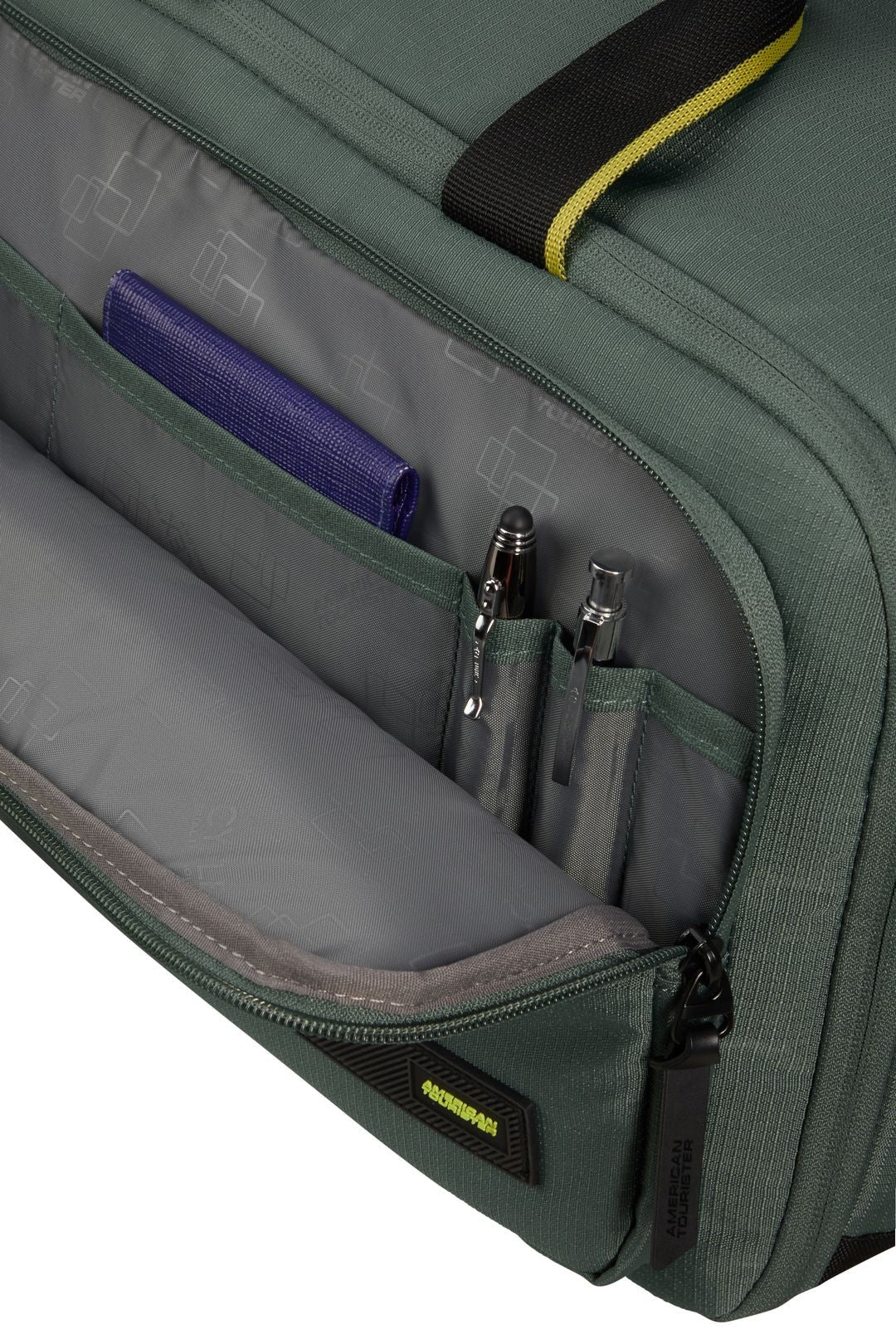 TAKE2CABIN ofrece múltiples soluciones de cabina con espíritu aventurero. Todas ellas están fabricados íntegramente con material rPET utilizando la innovadora tecnología de materiales RecyclexTM de American Tourister. La gama tiene un aire informal, gracias al resistente tejido rPet ripstop y a detalles como el parche de goma con el logotipo. Ideal para todos los viajeros de compañías low-cost preocupados por el presupuesto, que desean un producto de a bordo resistente, organizado y ligero con gran volumen.