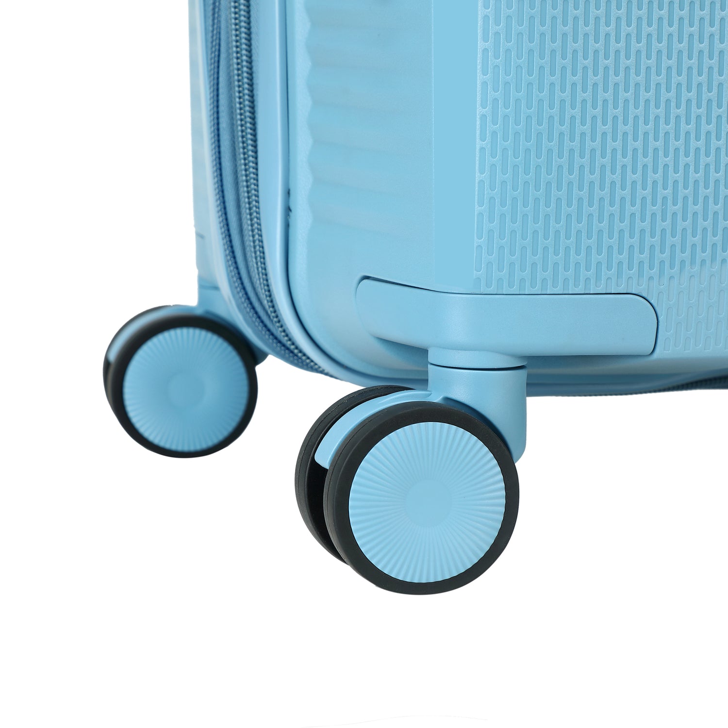 Super resistente, maleta 100% polipropileno con "Cremallera antirobo", con doble capa de dientes. Estas cremalleras están especialmente diseñadas para resistir pinchazos y tienen una doble capa para evitar que objetos punzantes las dañen, lo que dificulta que los ladrones puedan abrir la maleta con facilidad.