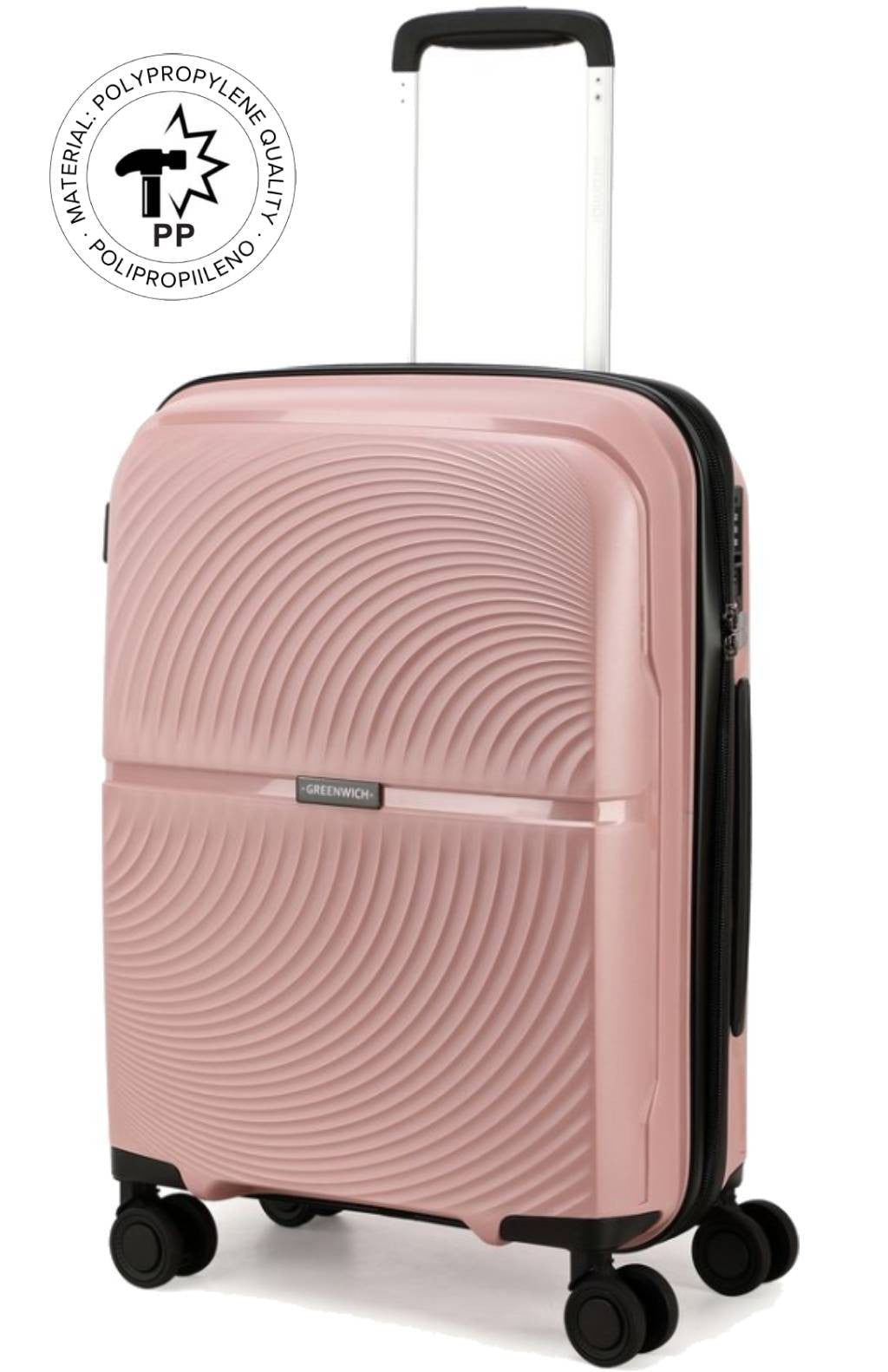 La maleta de viaje Riga posee una carcasa finamente granulada que ofrece una gran resistencia a los choques gracias a su material de polipropileno.