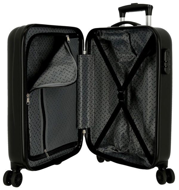 Disfruta de tus días con esta colección de maletas y neceseres de viaje de Disney . Puedes llevar tu ropa en el interior de las maletas de cabina con un compartimento de cremallera por un lado y gomas de sujeción en el otro y puedes desplazarte fácilmente con sus cuatro ruedas dobles de giro multidireccional. Su cierre de combinación lateral la mantendrá protegida en todo momento. Además, en los neceseres a juego fabricados en ABS podrás llevar todos tus accesorios y adaptarlo perfectamente al trolley.