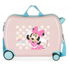 Con Minnie la diversión está asegurada, a la ratoncita le encanta tanto jugar que estaría todo el día, y vas a sentir lo mismo cuando lleves esta preciosa colección de maletas, mochilas, estuches y neceseres, porque todo te girará entorno a Minnie, y eso te encantará. Al igual que llevar esta maleta infantil, en tono rosa pastel de lo más mona e ideal para cualquier niña, además lleva cuatro ruedas y puede ir montada en ella, tirando de la correa que lleva, lo que hará muy fácil y divertido llevarla a cualquier viaje.
