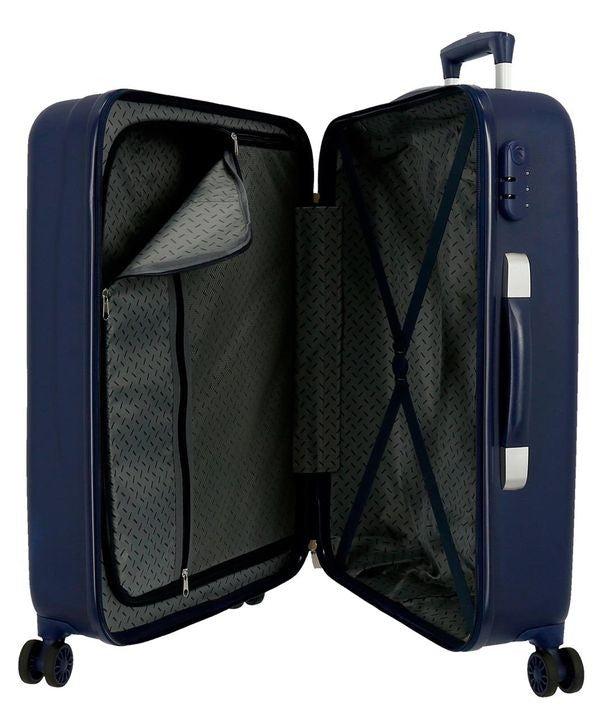 Super impactantes son estas maletas con el escudo del capitan América como protagonista. No pasaran desapercibidas estas maletas tan emblemáticas con el escudo del personaje mas genuino de Marvel . Perpara tu equipaje y viaja con estas maletas a los lugares más increibles. Lllevarás todo tu equipaje muy bien organizado ya que cuentan con un compartimento de cremallera por un lado y gomas de sujeción en el otro. Unas maletas muy completas con las que además podrás desplazarte fácilmente gracias a sus cuatro ruedas dobles de giro multidireccional y a su cierre de combinación lateral que mantendrá tu equipaje siempre seguro.