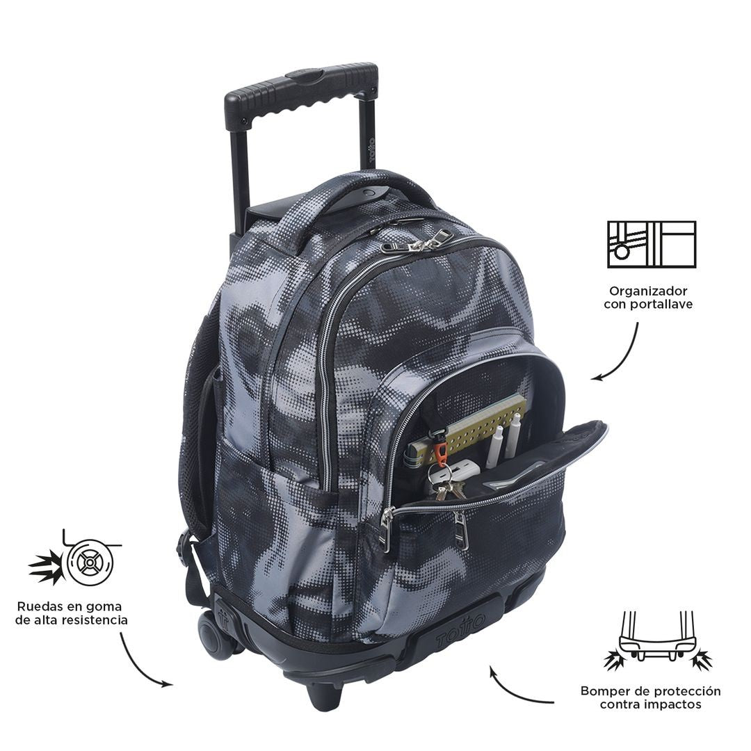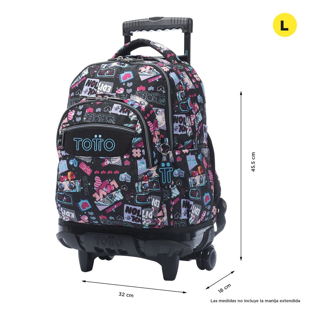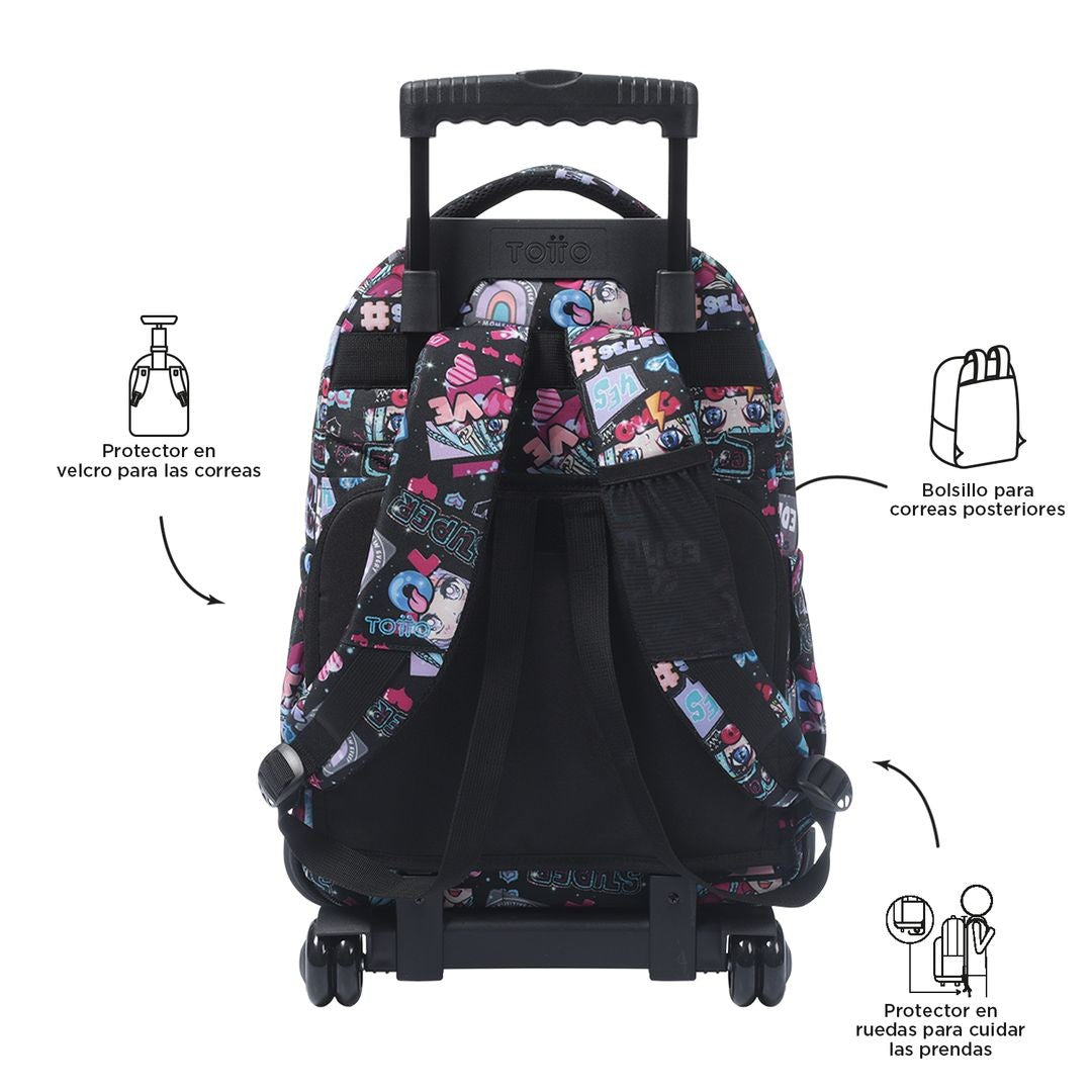 TOTTO Mochila escolar con ruedas Renglones + Estuche Tablero - 8C5 Sticky - Negro está agotado y se enviará tan pronto como vuelva a estar disponible.