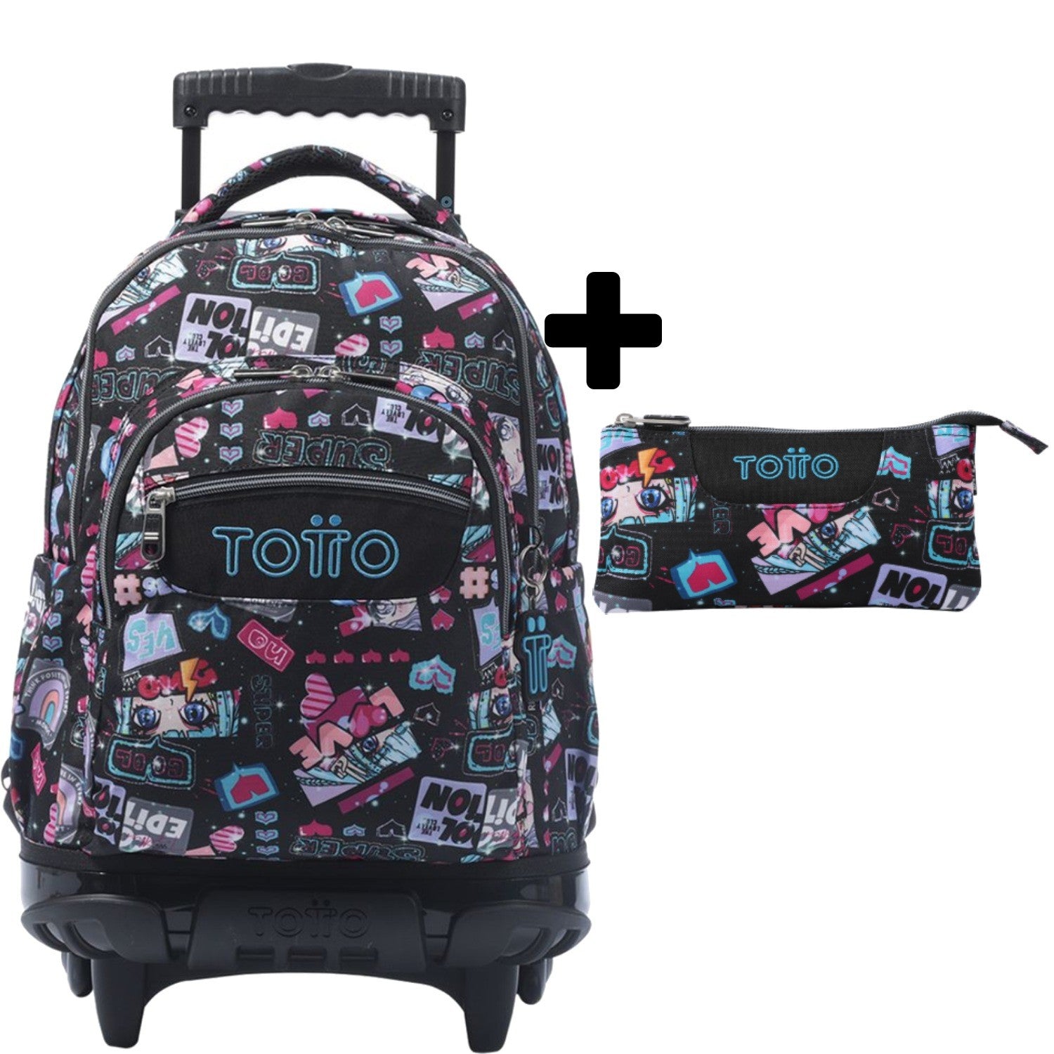 TOTTO Mochila escolar con ruedas Renglones + Estuche Tablero - 8C5 Sticky